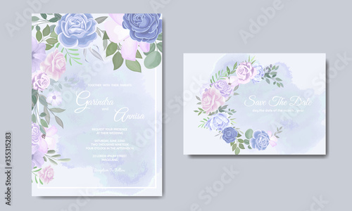 Wedding invitation card template set with beautiful floral leaves Premium Vector