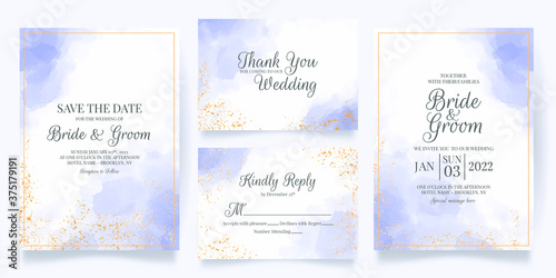 wedding invitation card template set with watercolor decoration