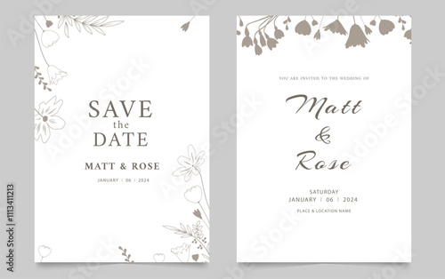 Wedding invitation card template with floral frame decoration. Vector illustration