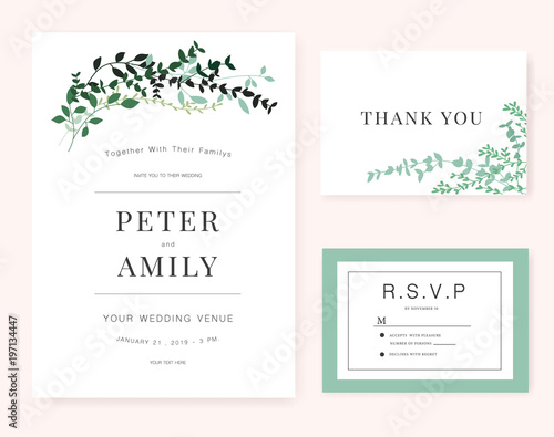 Wedding invitation Card template with green plant