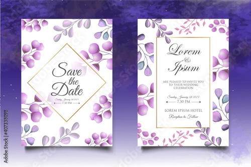 Wedding invitation card with beautiful flowers and leaves