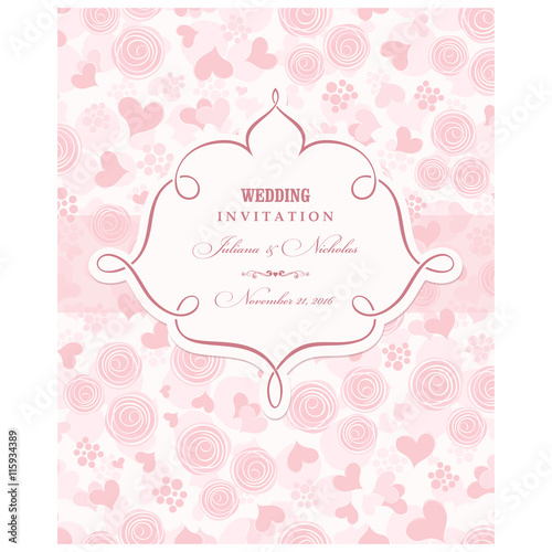 Wedding Invitation card with pink roses