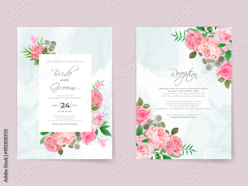 Wedding invitation cards set pink roses