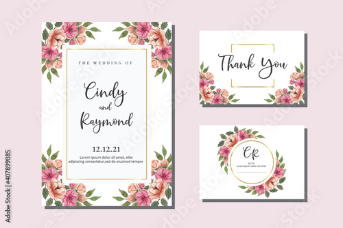 Wedding invitation floral watercolor hand drawn Flowers design Invitation Card Template Printable Size