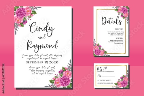 Wedding invitation frame set, floral watercolor hand drawn Dahlia with Peony Flower design Invitation Card Template