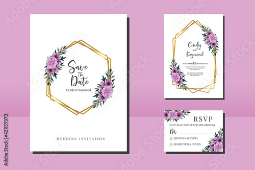 Wedding invitation frame set, floral watercolor hand drawn Geranium Flower design Invitation Card Template