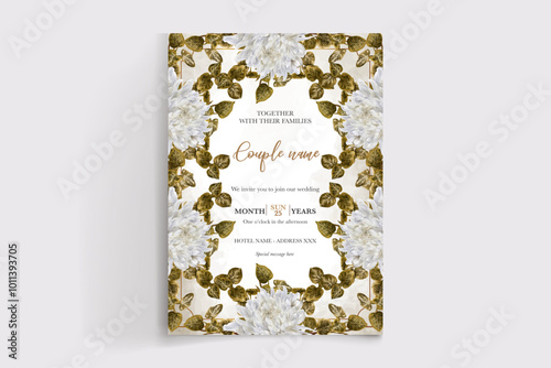 WEDDING INVITATION FRAME WITH FLOWER DECORATIONS WITH FRESH LEAVES