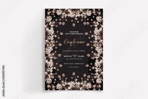 WEDDING INVITATION FRAME WITH FLOWER DECORATIONS WITH FRESH LEAVES