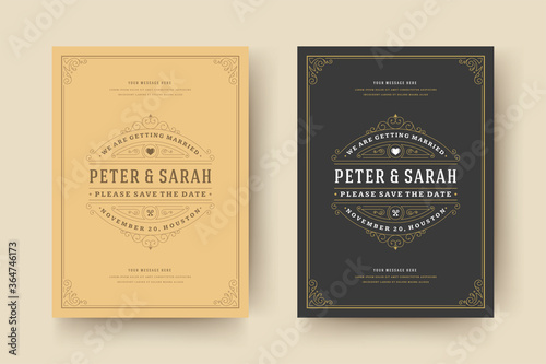 Wedding invitation save the date card template flourishes ornaments vignette swirls
