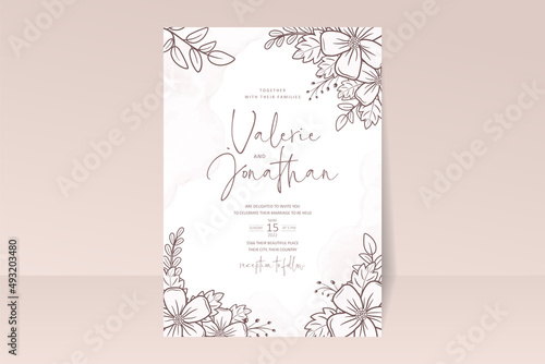 Wedding invitation template with floral outline decoration