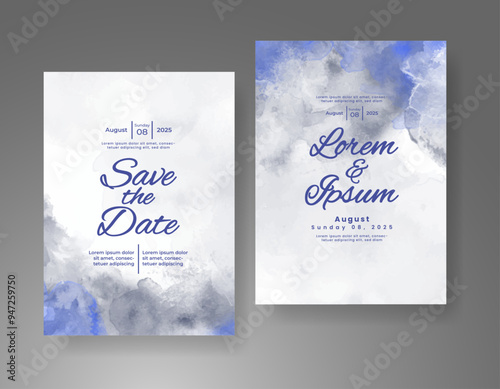 Wedding invitation with Abstract splashed watercolor background