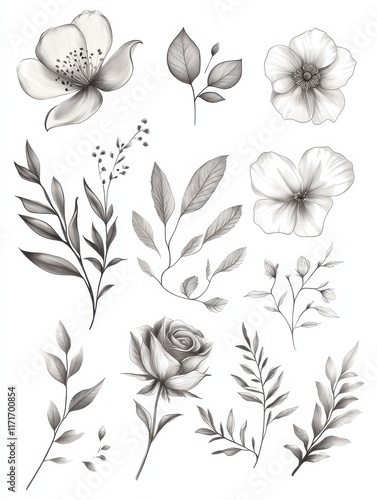 Wedding logo vector template. Botanical and floral logo element. Borders and dividers frame set. Hand drawn leaves branch, herb,flower, rose. Beauty and fashion frame design for logo and invitation.