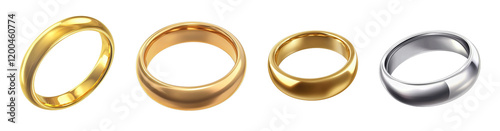 Wedding Rings Collection: A stunning collection of four classic wedding bands in different precious metals—yellow gold, rose gold, and platinum—displayed against a clean backdrop.