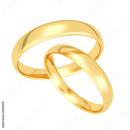 Wedding rings. Gold. Isolated. 3d illustration.