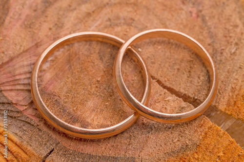 Wedding rings on a tree stump