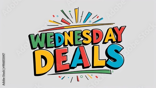 Wednesday deals colorful hand drawn lettering art design on plain white background