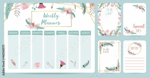 Weekly planner start on Sunday with animal and sun,to do list that use for vertical digital and printable A4 A5 size