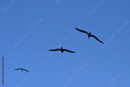 Weißbauchtölpel, fliegend, auf Nahrungssuche / Fischfang über dem Meer unweit der Küste