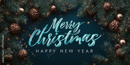 Weihnachtskarte Merry Christmas und Happy New Year. Weihnachtsbanner Karte oder Gruß
