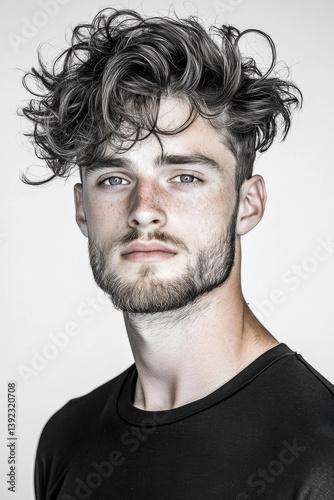 Weird hairstyle, Photograph of a man with a curly mullet hairstyle.
