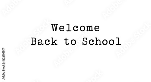 Welcome back to school message in typewriter font on a white background for educational purposes