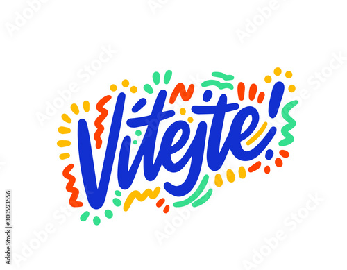 Welcome hand drawn vector lettering. Inspirational handwritten phrase in Czech. Hello quote sketch typography. Inscription for t shirts, posters, cards, label.
