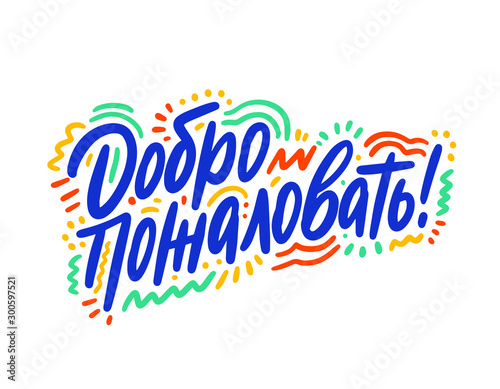 Welcome hand drawn vector lettering. Inspirational handwritten phrase in Russian. Hello quote sketch typography. Inscription for t shirts, posters, cards, label.