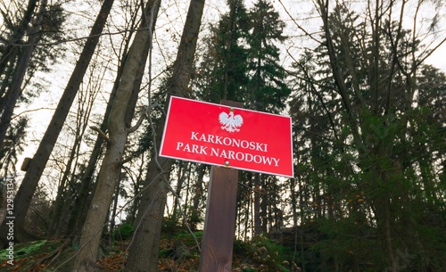 Welcome Sign Karkonoski National Park, Karkonosze Mountains, Poland