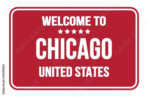WELCOME TO CHICAGO - UNITED STATES, words written on red street sign stamp