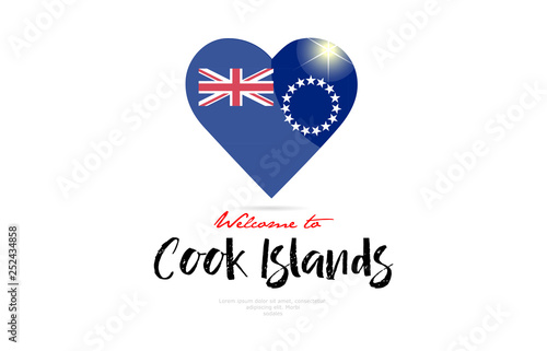 Welcome to Cook Islands country flag inside love heart creative logo design