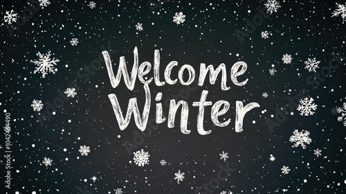 Welcome winter text surrounded by snowflakes on dark background - winter concept