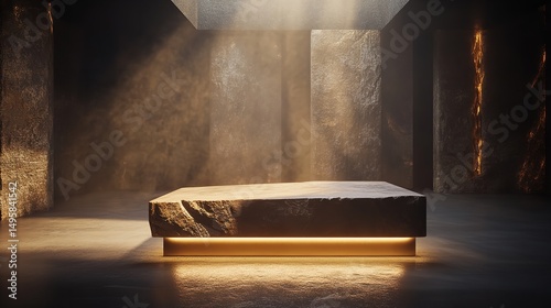 Well-Lit Stone Pedestal with Center-Focused Lighting for Elegant Product Display
