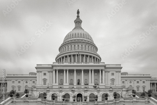 West facing entrance to the US Capitol building in Washing DC. Black & White