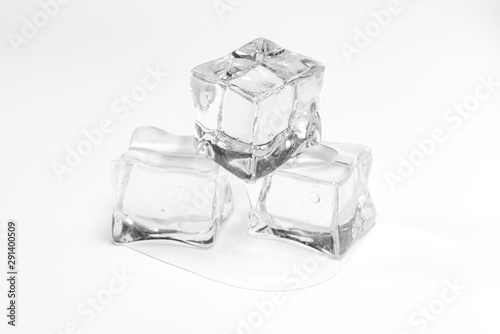 Wet ice cubes isolated on white background.Heap of melting ice on the plate.