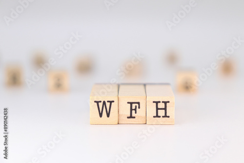 WFH acronym - Concept of Work From Home written on wooden cubes isolated on white background with copy space for text phrase.