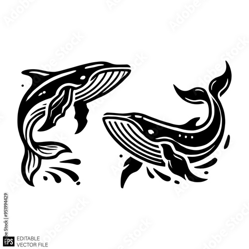whale graphic design black and white vector clip art silhouette