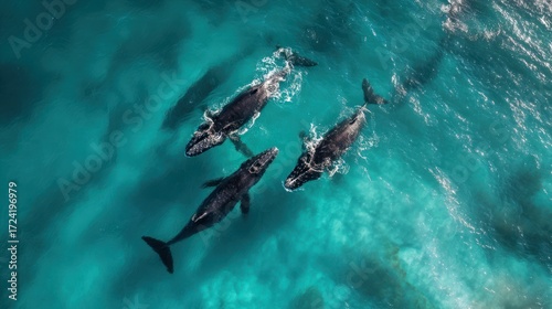 Whales swimming in turquoise water