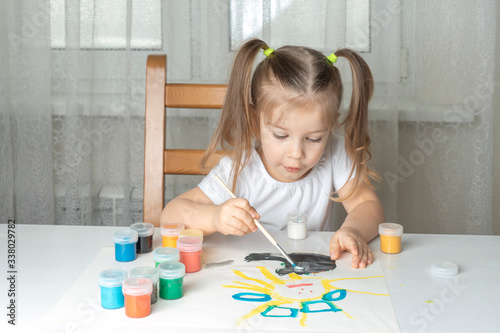 what to do for a child during the period of quarantine and self-isolation, a girl plays and paints with oil