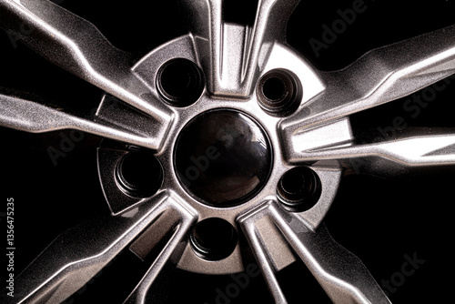 wheel. black background. car wheel with tire. disk is smelted from titanium. close-up. there is tinting