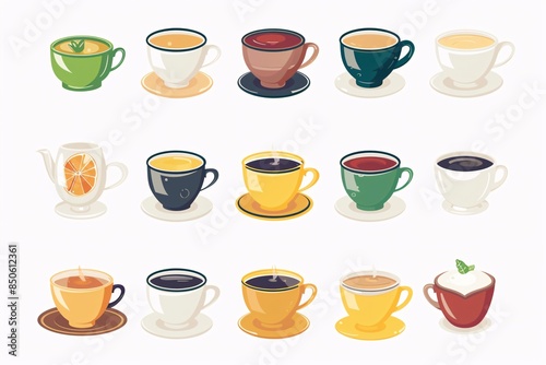 Whimsical 64-Bit Tea Illustration in Flat Design on Isolated White Background