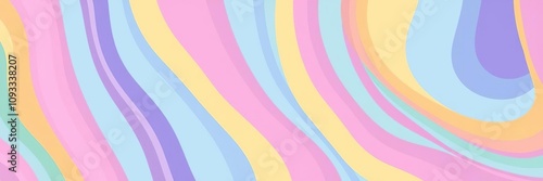 Whimsical abstract background featuring pastel rainbow stripes in soft hues of blue purple pink yellow green and orange, serene, whimsical, abstract background