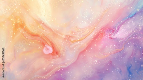 Whimsical abstract with pastel tones swirling patterns and sparkling particles. Amazing wallpaper