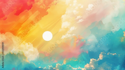 Whimsical Colorful Background with Clouds and Sun, Playful Imagination Scene