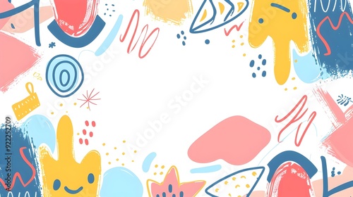 Whimsical Doodle Page Print Border Design with Blank Space for Mock Up Message