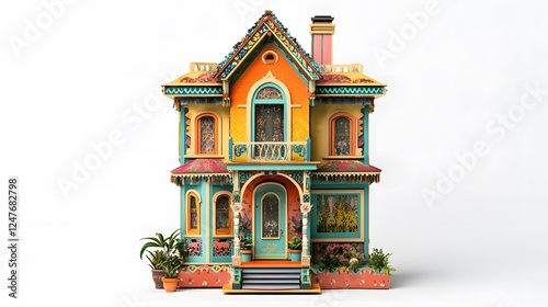 Whimsical Fairy-Tale Toy House Isolated In White Background
