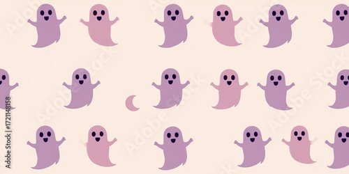 Whimsical, friendly ghost silhouettes in a repeating pattern on a pastel background, cute ghost, halloween pattern