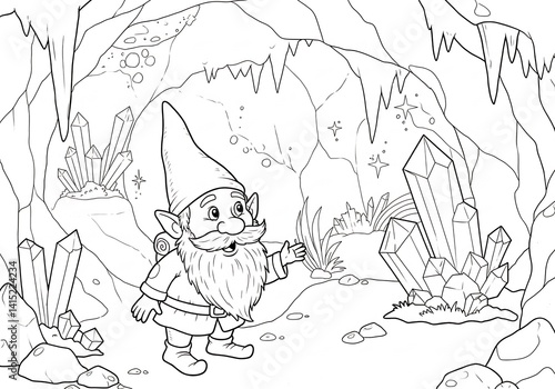 Whimsical Gnome Illustration in a Black and White Forest Setting
