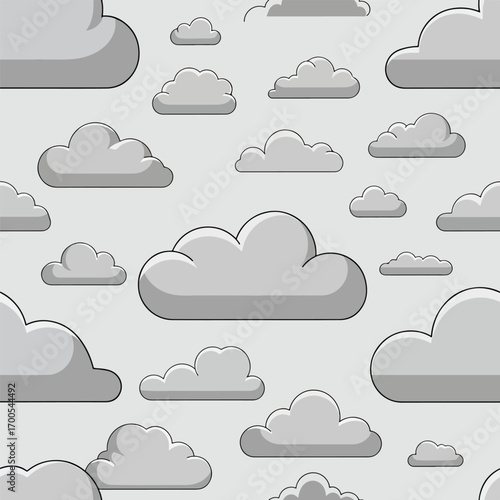 Whimsical gray cloud pattern creates a calming and visually appealing backdrop, patern seamless, royalty stock.
