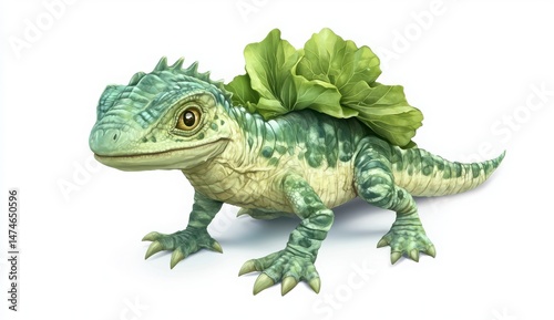 Whimsical Green Lizard With Lettuce Leaves On Its Back Digital Illustration