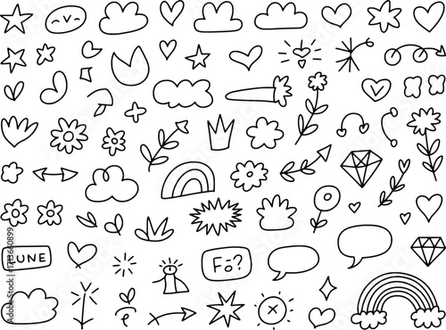Whimsical hand drawn doodle icons cute elements collection for kids designs and more